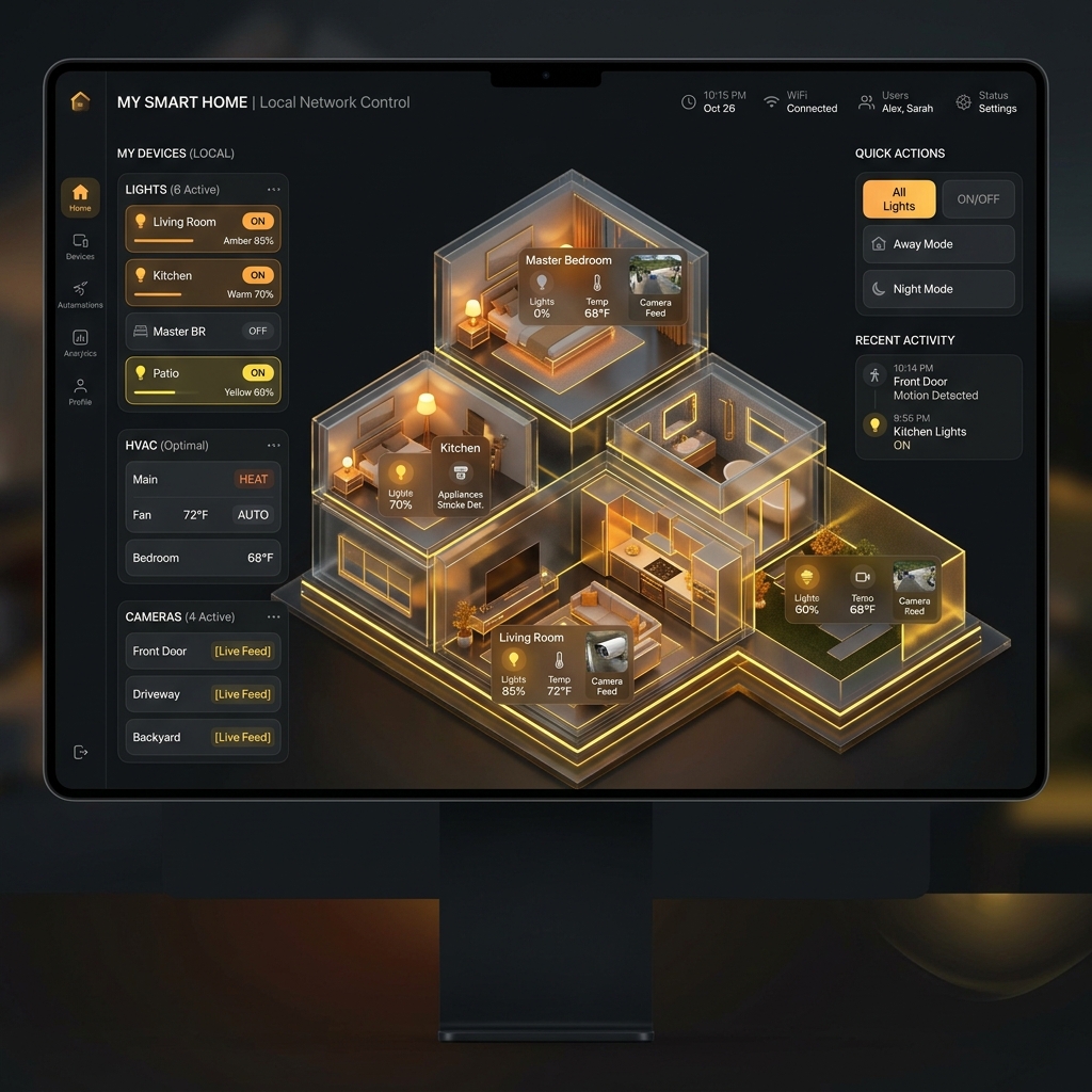 Unlike consumer smart home hubs, dHome processes all automation logic and telemetry locally. No data is ever transmitted to a third-party cloud.